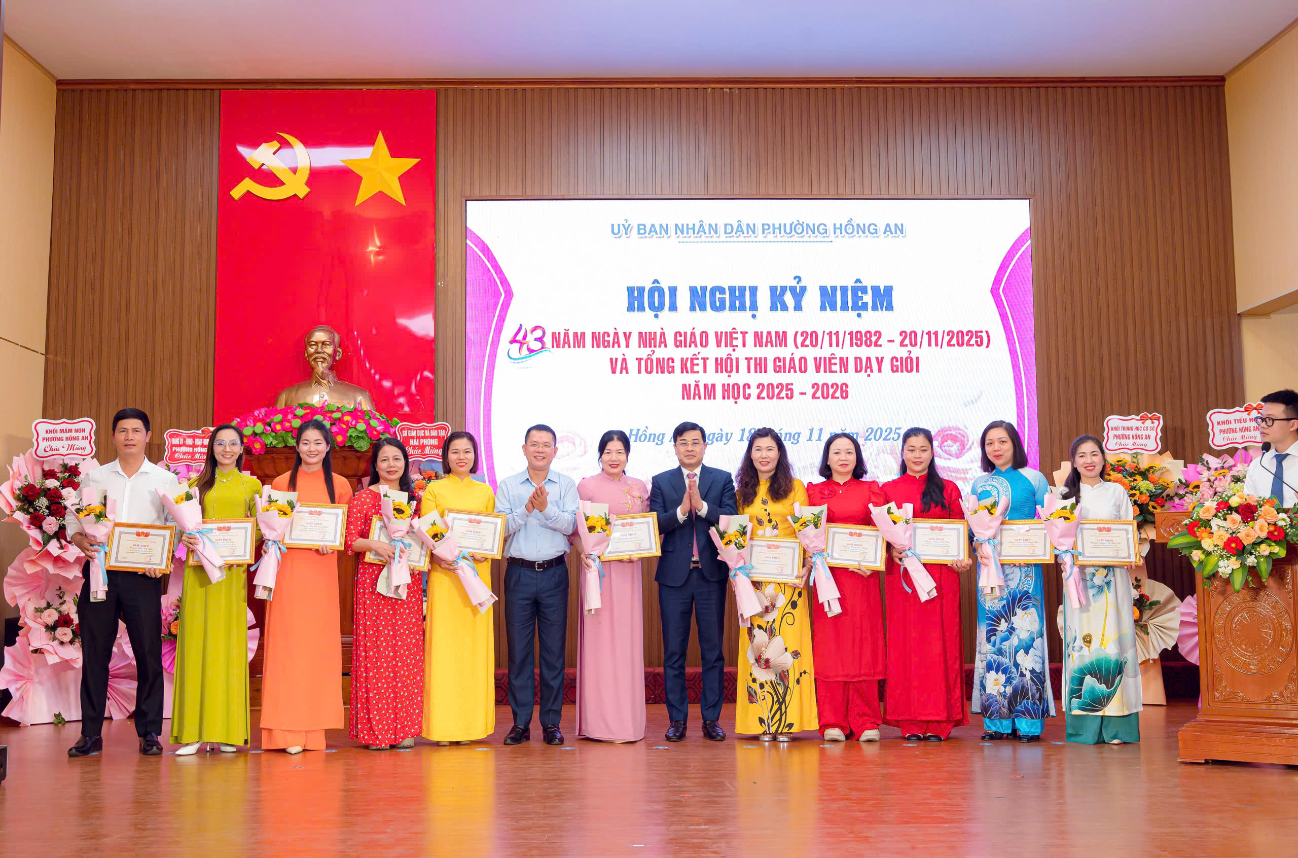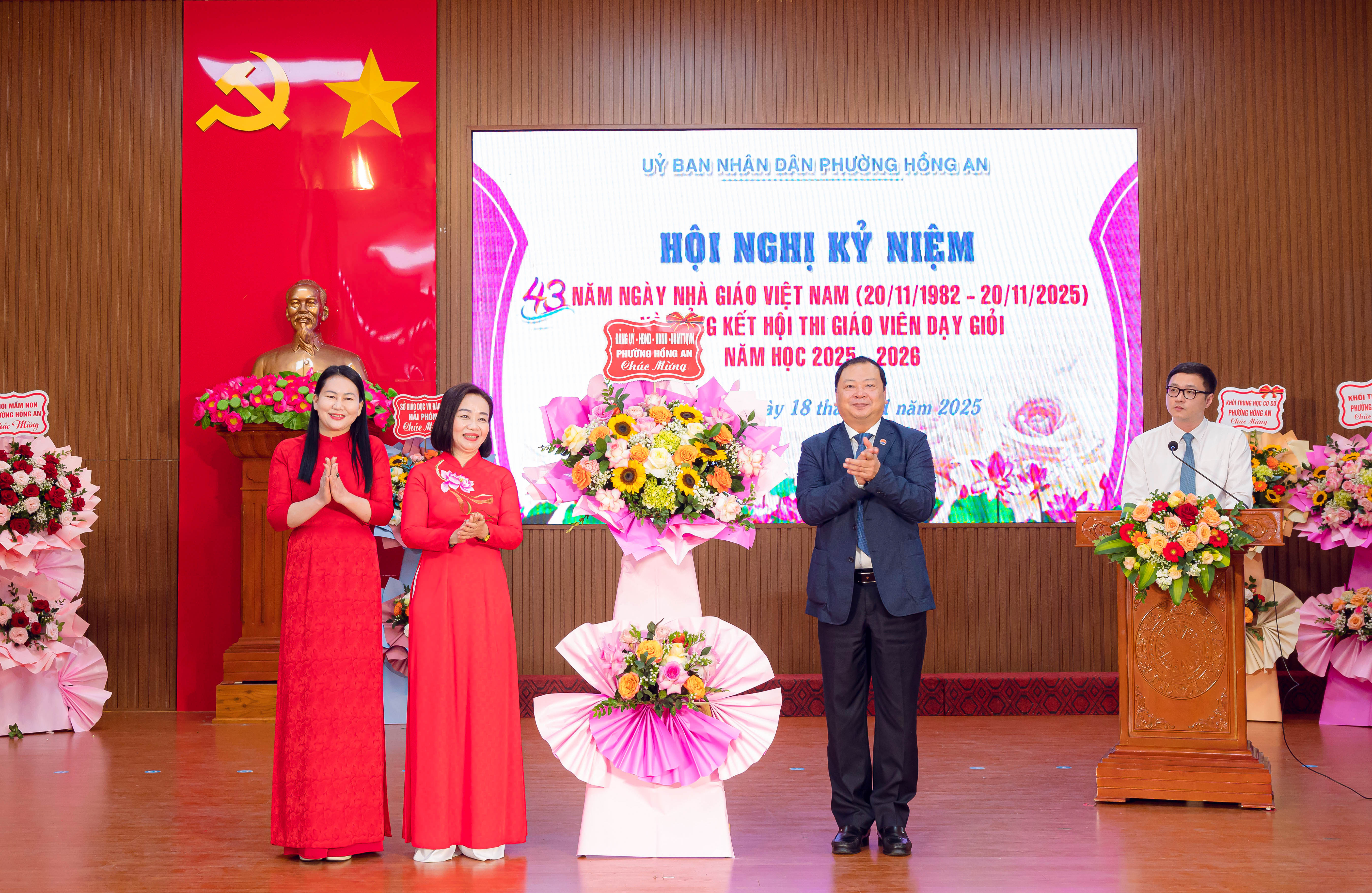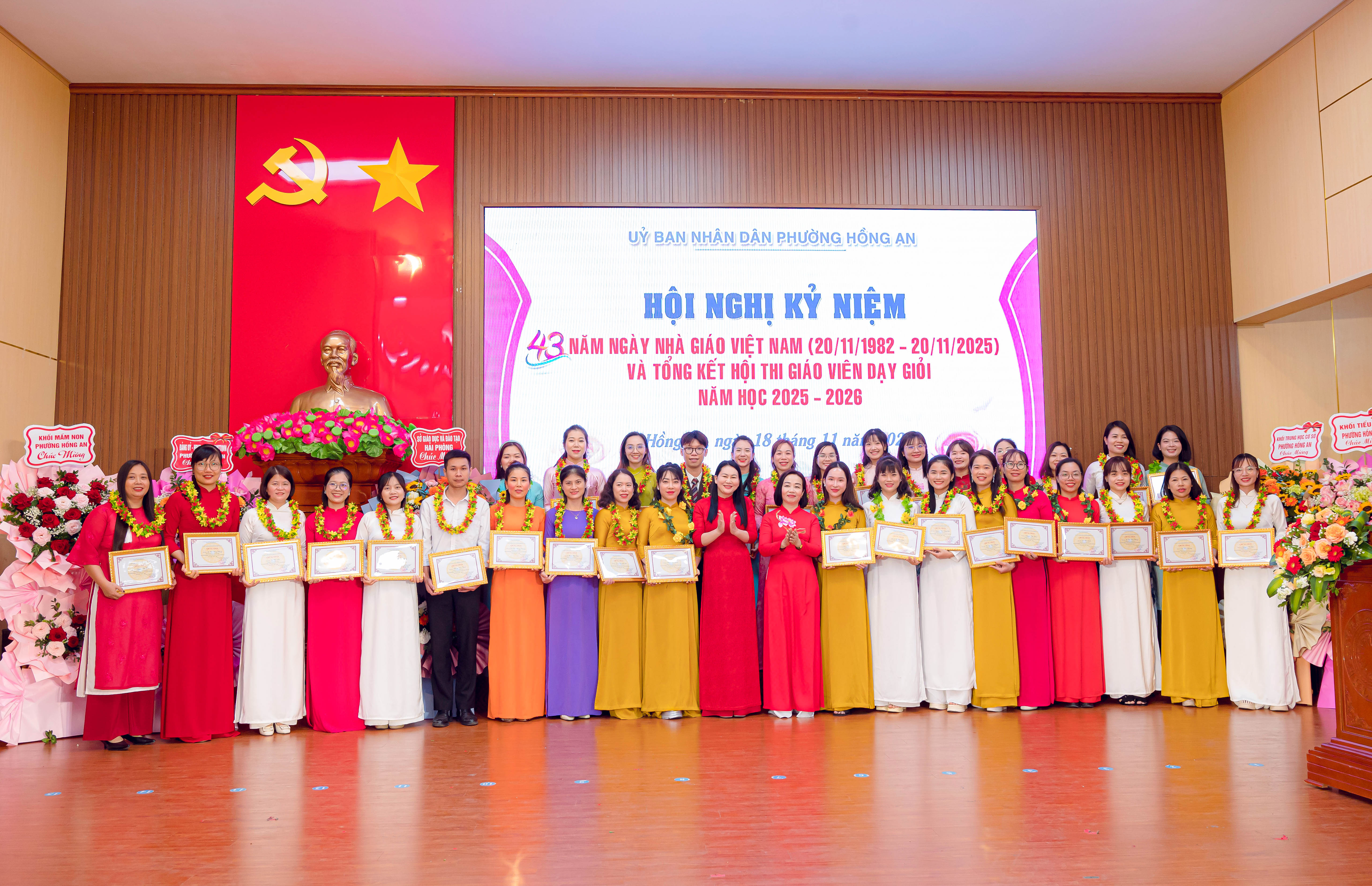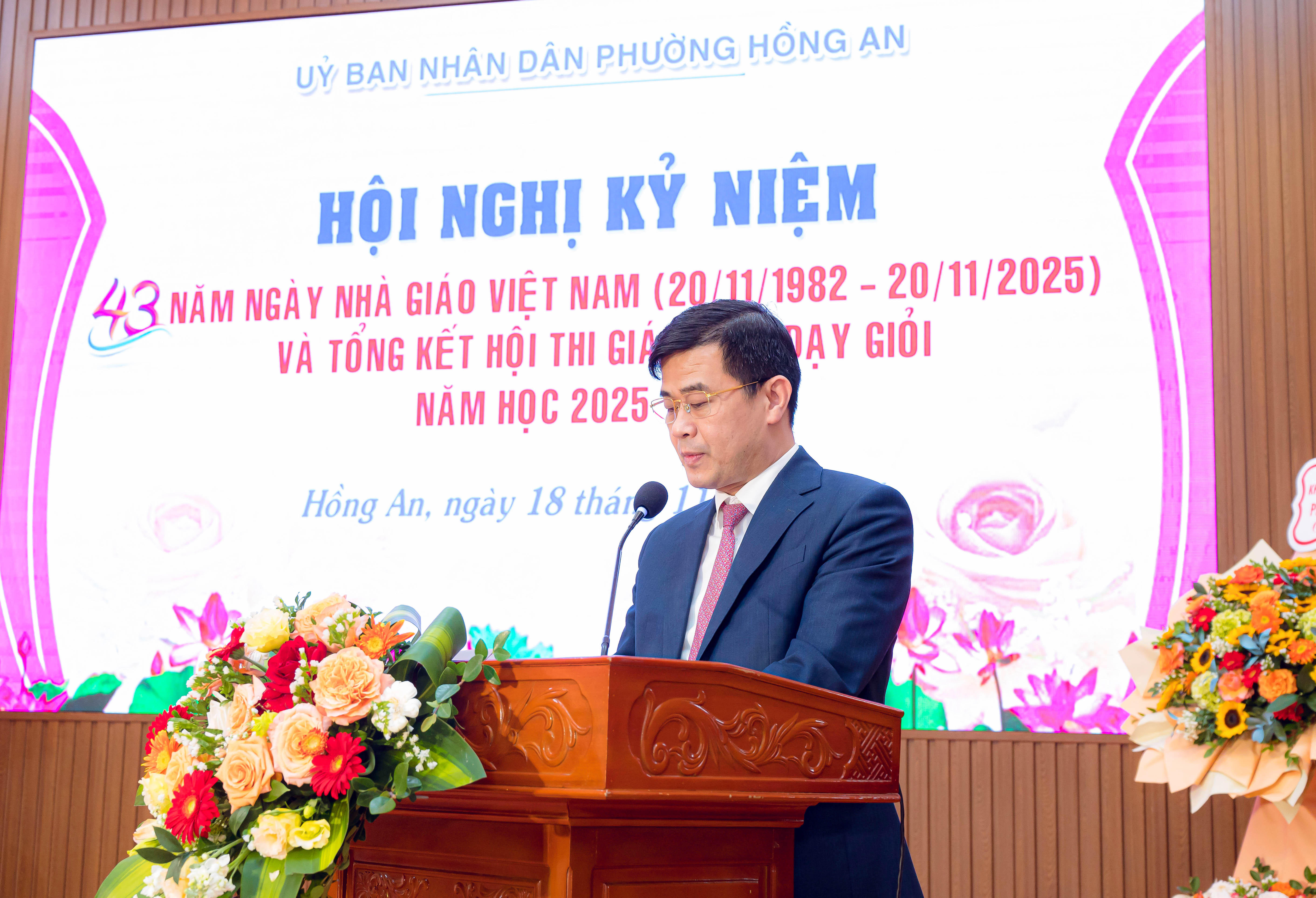 Sáng ngày 18/11/2025, UBND phường Hồng An tổ chức Hội nghị kỷ niệm 43 năm Ngày Nhà giáo Việt Nam (20/11/1982 – 20/11/2025) và Tổng kết Hội thi Giáo viên dạy giỏi cấp phường năm học 2025–2026. Đây là dịp để tôn vinh truyền thống “tôn sư trọng đạo” tốt đẹp của dân tộc; khẳng định vai trò quan trọng của người thầy trong sự nghiệp trồng người, đào tạo nguồn nhân lực cho tương lai.