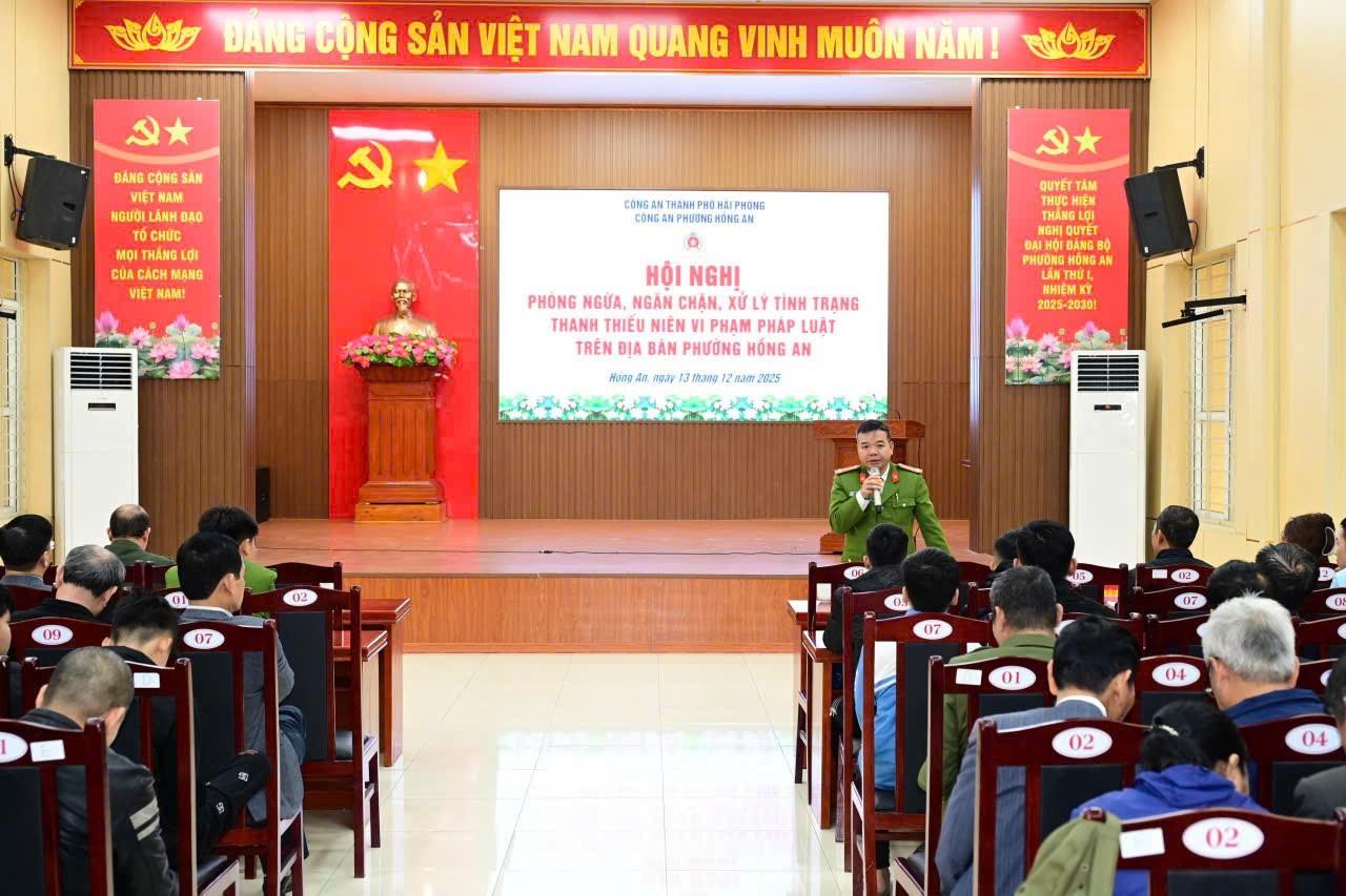 (congan.haiphong.gov.vn) - Chiều 13/12/2025, Công an phường Hồng An tổ chức hội nghị phòng ngừa, ngăn chặn, xử lý tình trạng thanh, thiếu niên vi phạm pháp luật trên địa bàn phường. Dự hội nghị có đại diện Phòng Cảnh sát giao thông, Phòng An ninh chính trị nội bộ, Đoàn thanh niên - Hội cựu CAND phường Hồng An.