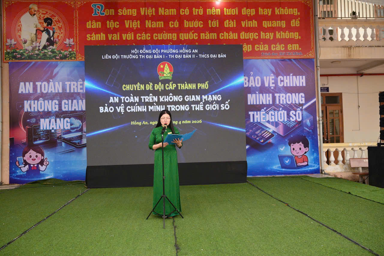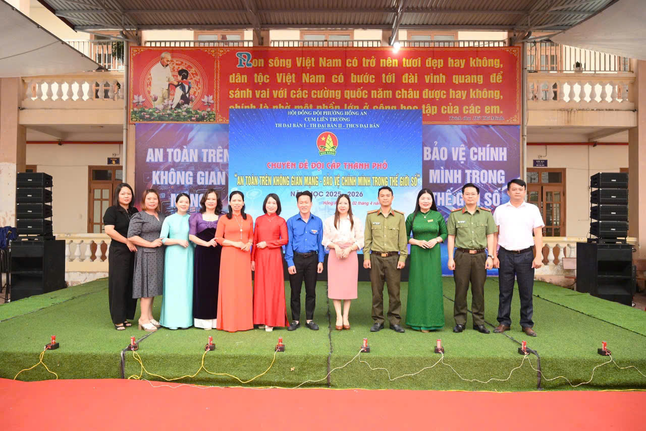 Vừa qua, trong không khí sôi nổi của các hoạt động Đội và phong trào thiếu nhi, cụm các trường Tiểu học Đại Bản I, Tiểu học Đại Bản II và THCS Đại Bản đã phối hợp tổ chức thành công chuyên đề Đội cấp thành phố với chủ đề “An toàn trên không gian mạng”. Đây là hoạt động trọng tâm nhằm trang bị "lá chắn" kỹ năng cho học sinh trong thời đại số.