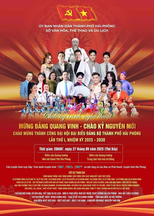 TỐI MAI 27/9: TRÂN TRỌNG MỜI NHÂN DÂN THÀNH PHỐ ĐẾN THƯỞNG THỨC CHƯƠNG TRÌNH NGHỆ THUẬT "MỪNG ĐẢNG QUANG VINH - CHÀO KỶ NGUYÊN MỚI"