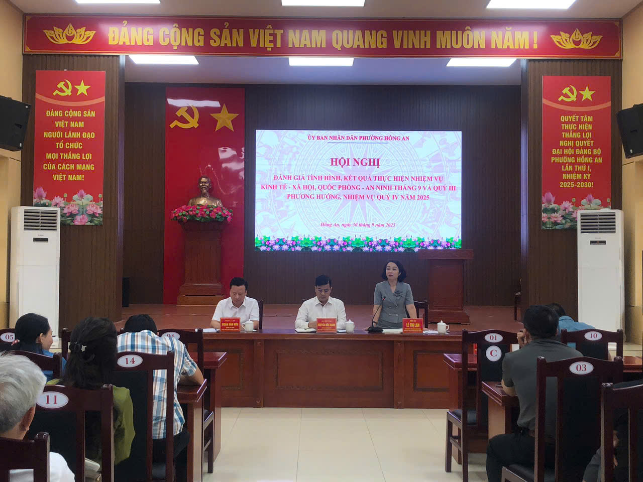 UBND phường Hồng An tổ chức Hội nghị đánh giá tình hình thực hiện nhiệm vụ kinh tế- xã hội, quốc phòng – an ninh tháng 9 và quý III/2025, phương hướng nhiệm vụ quý IV