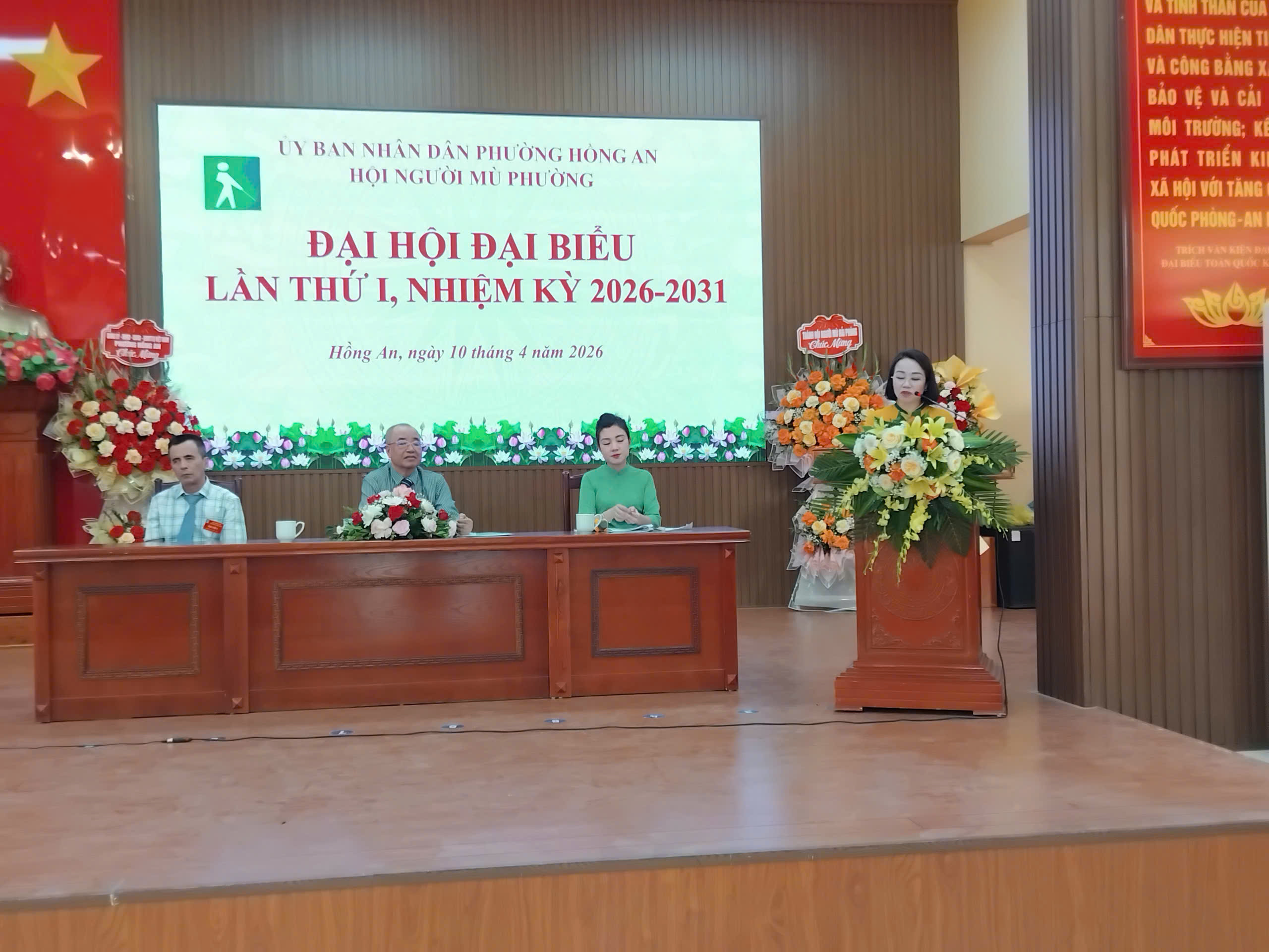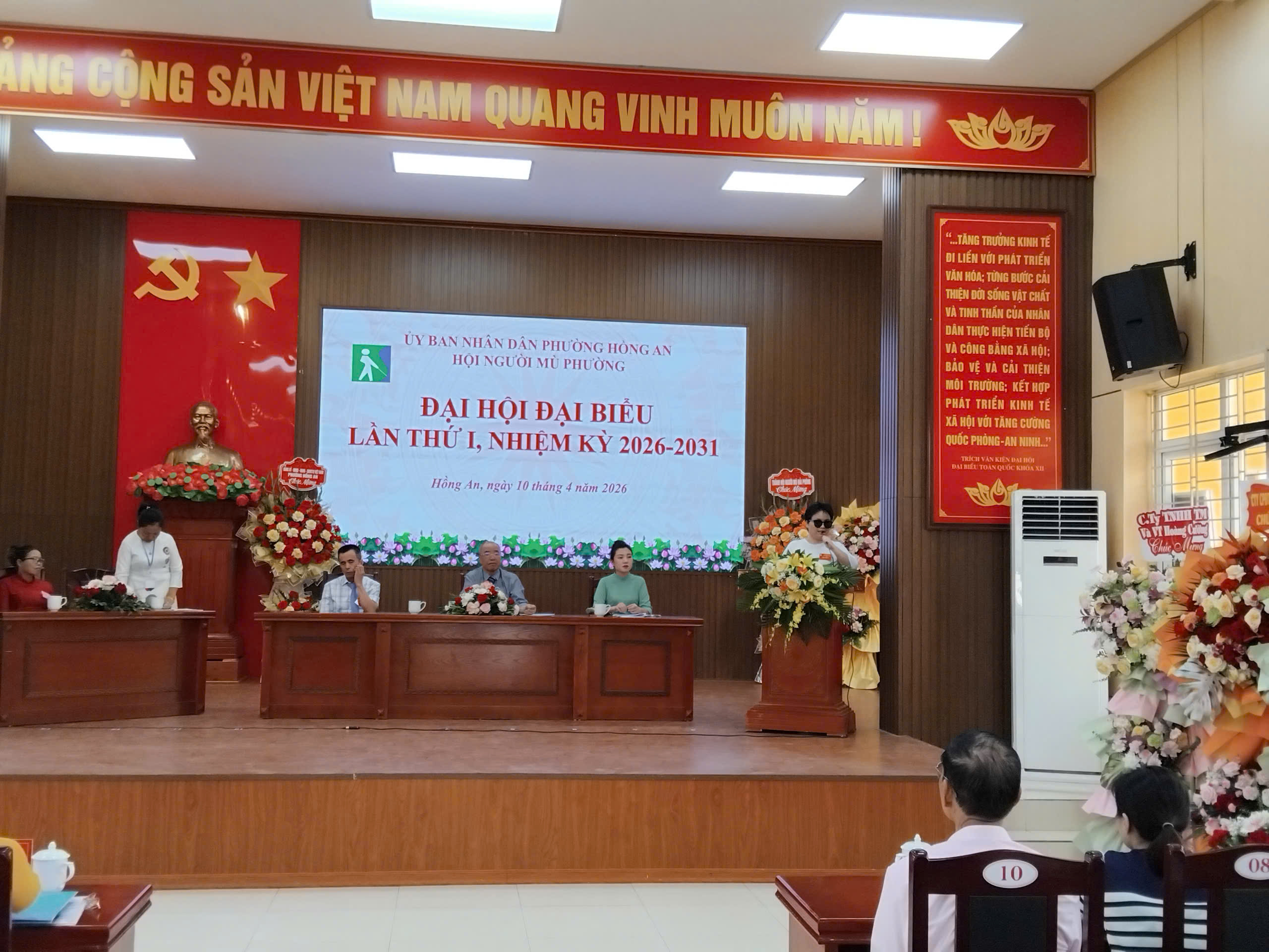 Chiều ngày 10/4/2026, tại Hội trường Nhà văn hóa phường Hồng An, Hội Người mù phường Hồng An đã long trọng tổ chức Đại hội đại biểu lần thứ I, nhiệm kỳ 2026 - 2031. Đây là sự kiện chính trị quan trọng, đánh dấu bước phát triển mới trong công tác hội và phong trợ giúp người khiếm thị trên địa bàn phường.