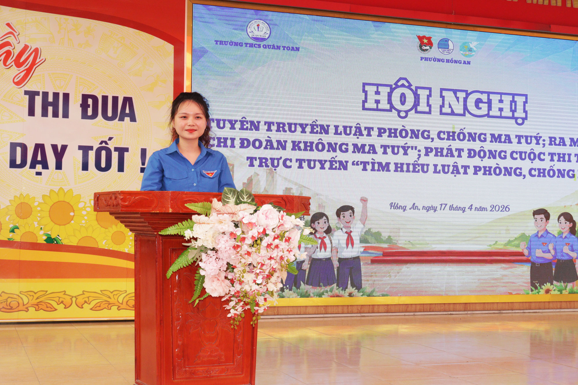 Chiều 17/4, tại Trường THCS Quán Toan, Đoàn phường Hồng An tổ chức Hội nghị tuyên truyền pháp luật về phòng chống ma túy; ra mắt mô hình “Chi đoàn không ma túy” và phát động cuộc thi trắc nghiệm trực tuyến “Tìm hiểu Luật phòng chống ma túy”. Tới dự có đại diện Thành đoàn Hải Phòng và các phòng, ban, đơn vị thuộc phường.