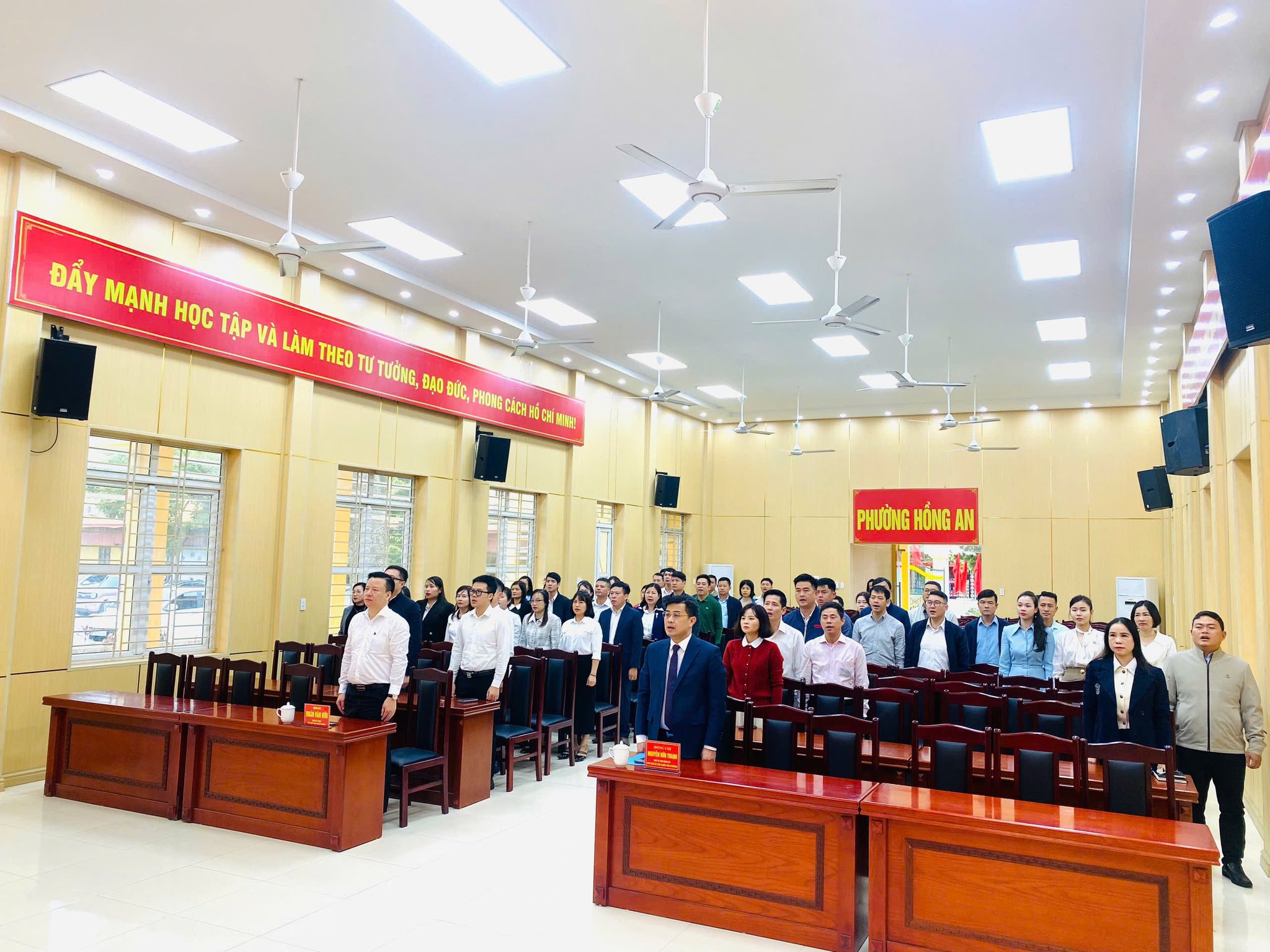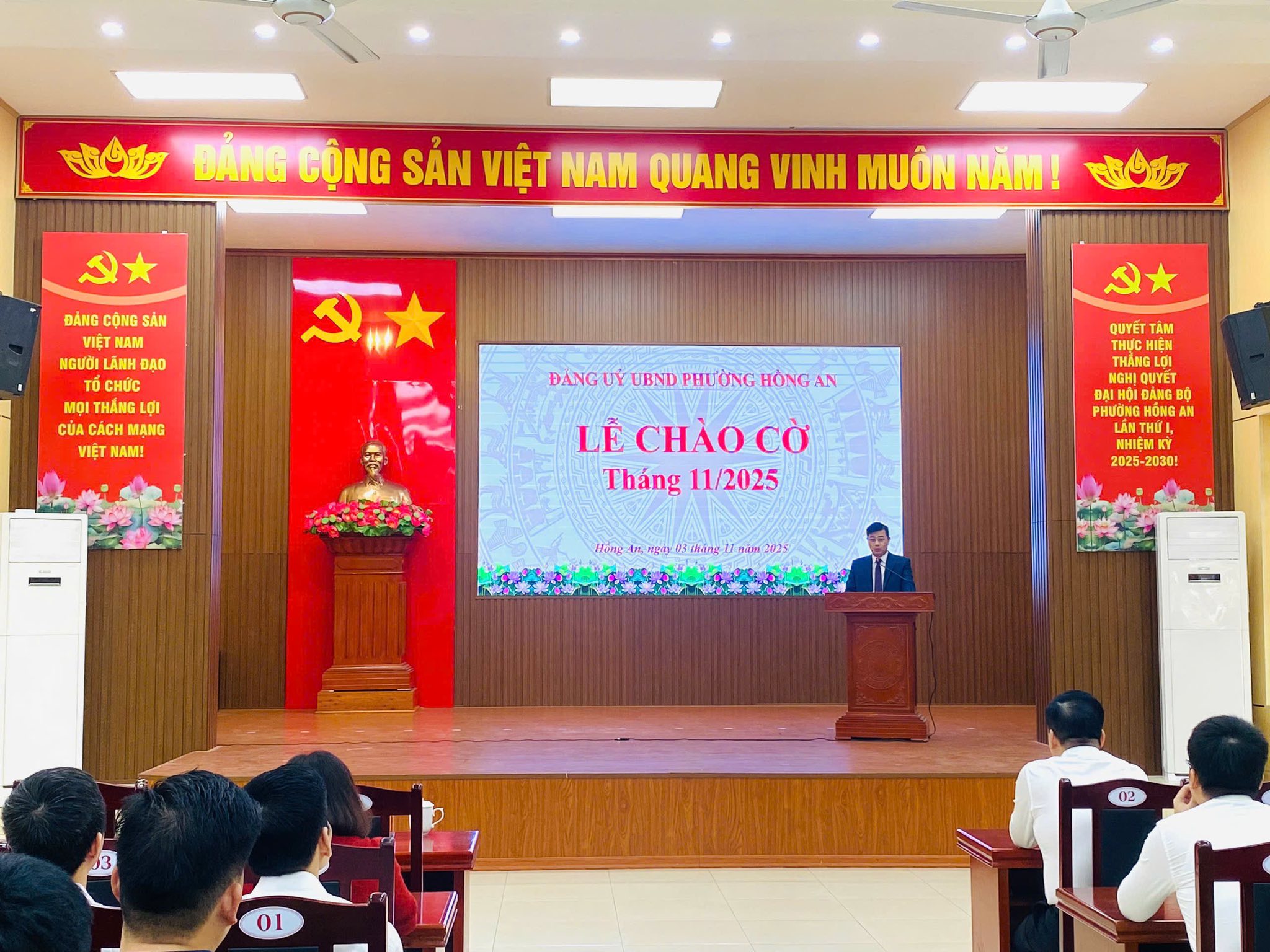 Sáng 03/11, Đảng uỷ - HĐND - UBND - Uỷ ban Mặt trận Tổ quốc Việt Nam phường Hồng An trang trọng tổ chức Lễ Chào cờ đầu tháng 11 – hoạt động chính trị ý nghĩa. Lễ chào cờ đã tạo không khí đoàn kết, thi đua sôi nổi, khích lệ tinh thần làm việc nghiêm túc, trách nhiệm của đội ngũ cán bộ, công chức, viên chức, người lao động, tạo đà phấn đấu hoàn thành thắng lợi các nhiệm vụ những tháng cuối năm 2025./.