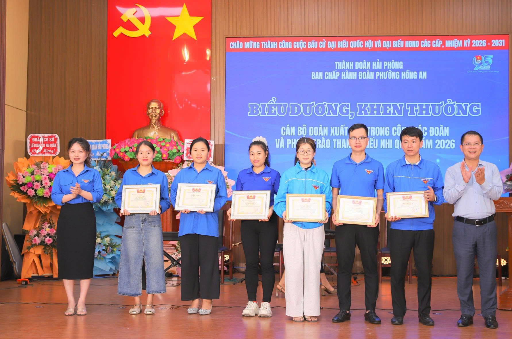 Trao tặng Giấy khen cho các cá nhân có thành tích xuất sắc trong công tác Đoàn và phong trào thanh niên.Nhân dịp này, Trung ương Đoàn TNCS Hồ Chí Minh tặng Kỷ niệm chương “Vì thế hệ trẻ” cho 5 cá nhân, Đoàn Thanh niên phường Hồng An tặng Giấy khen cho 41 cá nhân có thành tích xuất sắc trong công tác Đoàn và phong trào thanh niên tại địa phương.