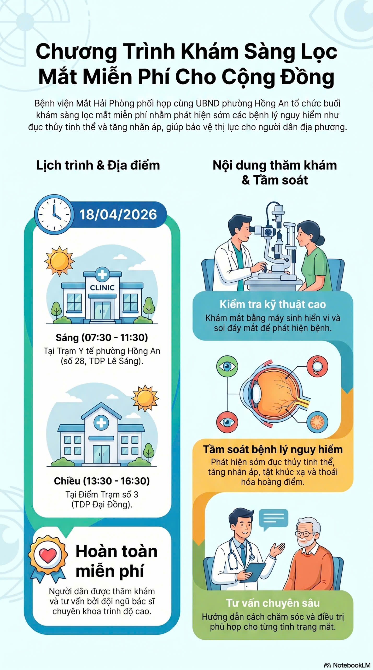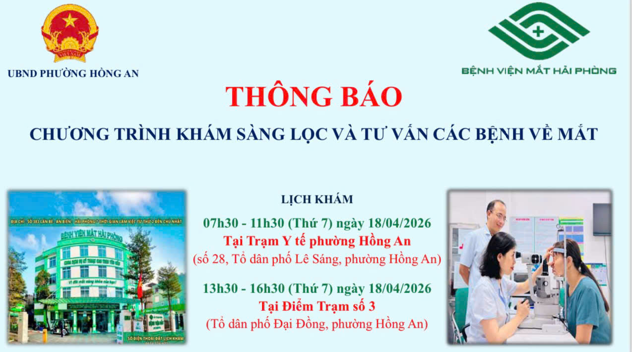 UBND phường Hồng An trân trọng thông báo và kính mời bà con nhân dân sắp xếp thời gian tham gia đông đủ, vì sức khỏe đôi Mắt của bản thân và gia đình.